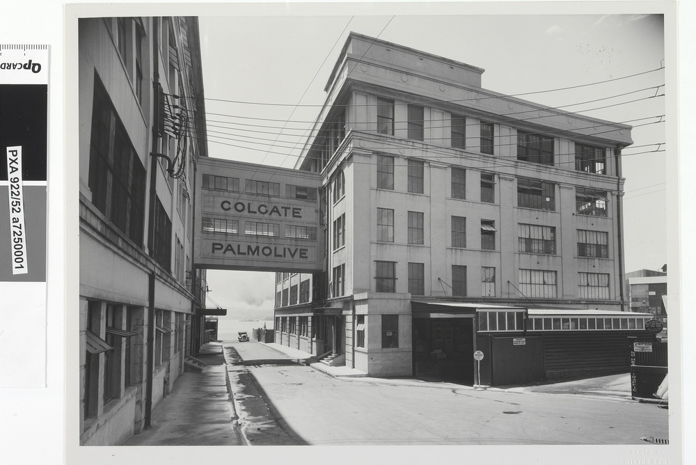 Another company producing soap and other household chemicals on the other side of the peninsula was Colgate Palmolive, whose factory in Waterview Bay was converted into an apartment building in 1997–in one of the only old industrial buildings’ adaptive reuse projects. (Photo credit State Library of NSW)